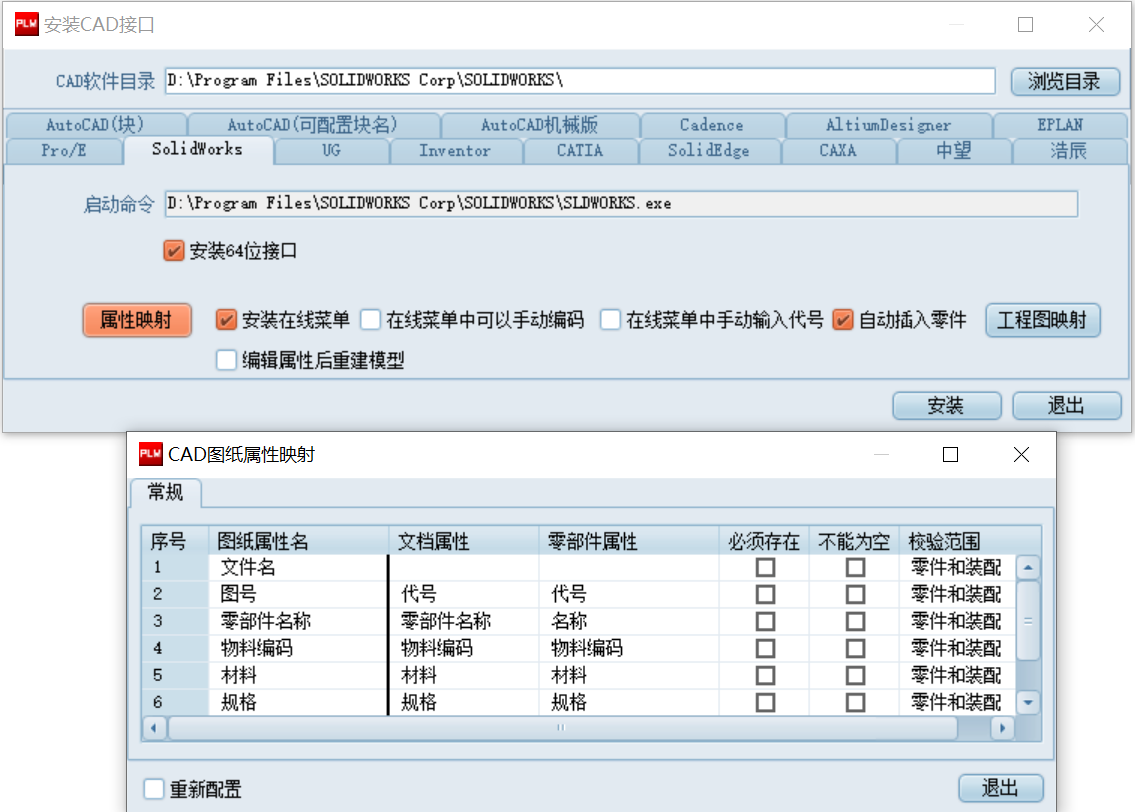 ● 支持“图纸驱动”的设计研发模式,提供与市面上常见的各种主流二维三维机械设计CAD、电子电路设计EDA深度集成的接口和工具。集成的二维CAD包括AutoCAD、CAXA、中望、浩辰及其他数据格式为DWG的各类CAD绘图系统等, 三维CAD包括SolidWorks、CATIA、Pro/E、Creo、UG NX、Solid Edge、Inventor 等,EDA包括EPLAN、Protel、Altium Designer、Cadence 等。