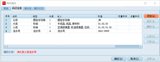 ● 支持柔性编码,按照企业产品和零部件管理规范编制有规则和事物分类特性的编码。可以采用分类码的形式对不同类别的产品和零部件进行编码,建立符合企业规范的编码体系。编码规则由码段和分类码层级组合而成,码段包括对象属性、字符串、日期、流水码、从属码等多种类型,还可以设置编码字段的约束关系。