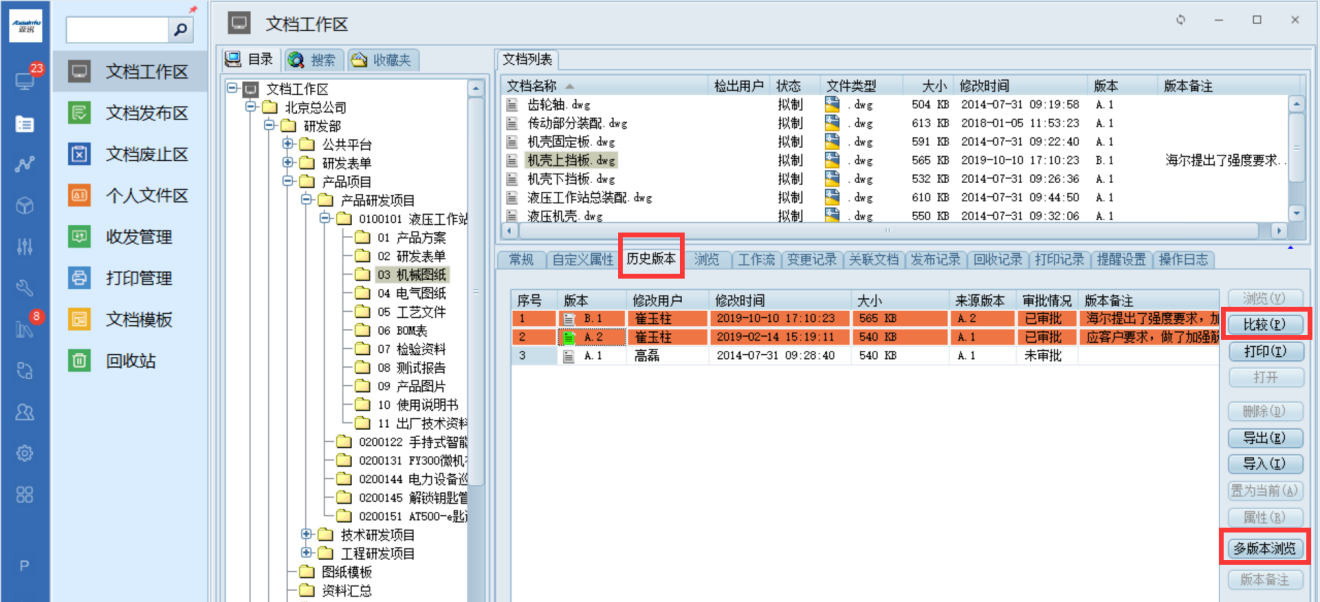 二是旧版本回收,当图纸发布新版本时,系统会自动标记旧版本为“历史版本”,并限制旧版本的下载与使用权限,同时提醒相关人员清理已流转的旧版本纸质档,避免小批量更改后旧版本未回收的问题;